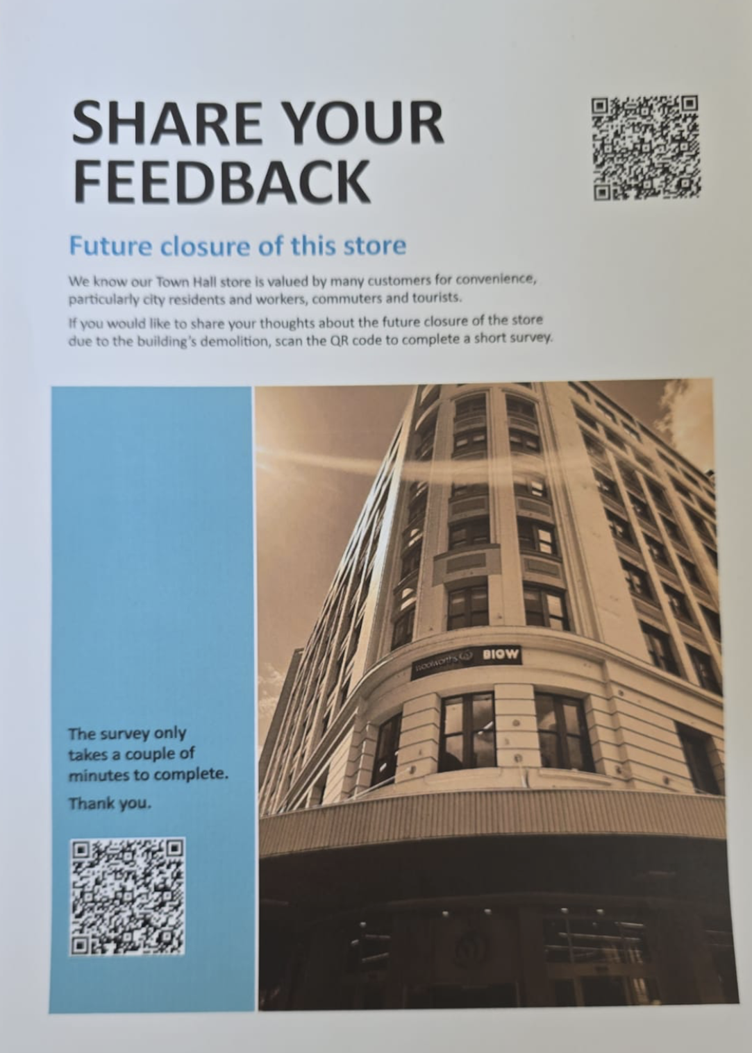 Alternatively, click the link below to complete the survey online and have your say about the future of the Town Hall store.